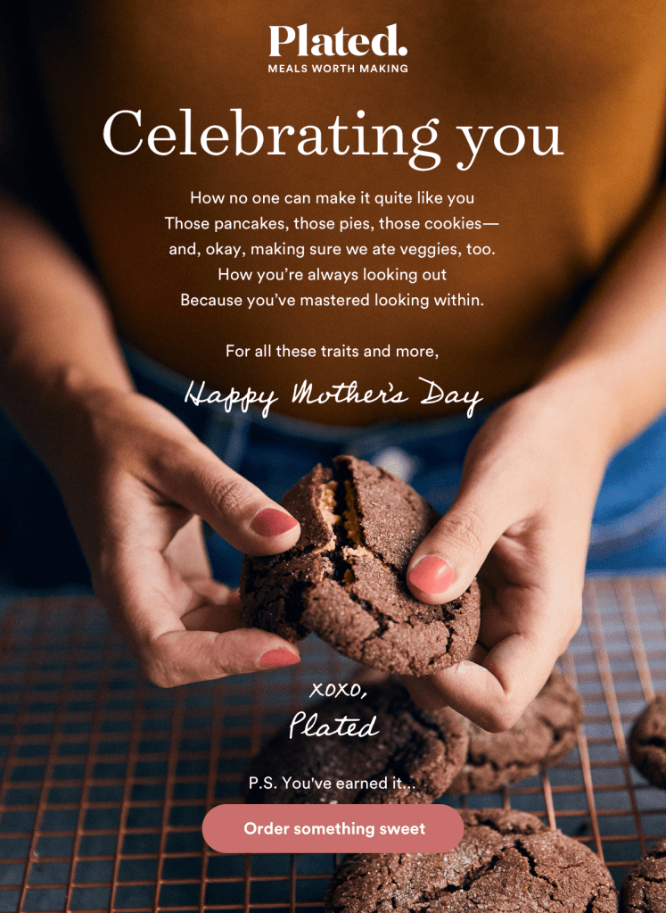 For us to stand out against our competitors, we wanted to lean into the emotional associations that food evokes in our everyday lives. One such opportunity was our Mother’s Day email, where we decided to put moms first with a thoughtful appreciative email, letting any promotion or sales-driven opportunity to take the back seat. We received so many notes of thanks from moms everywhere.